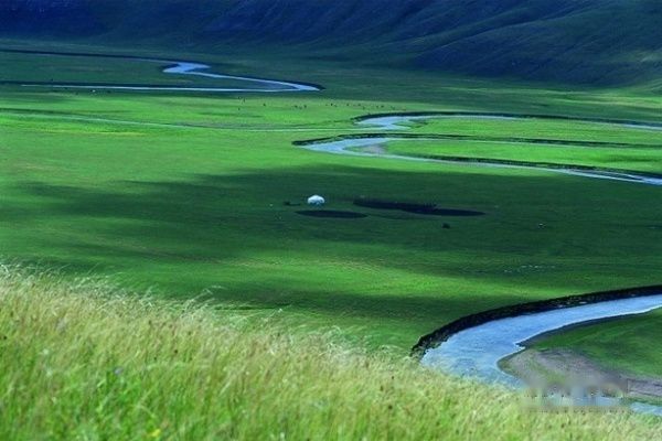 洁白的蒙古包散落在河边……