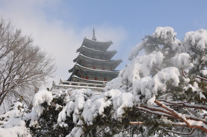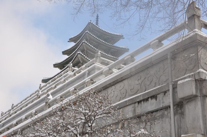 建筑本来一般,国内很多地方都可以找到,但在阳光和雪交相辉映的情况下显得很美