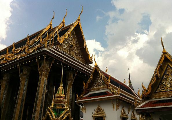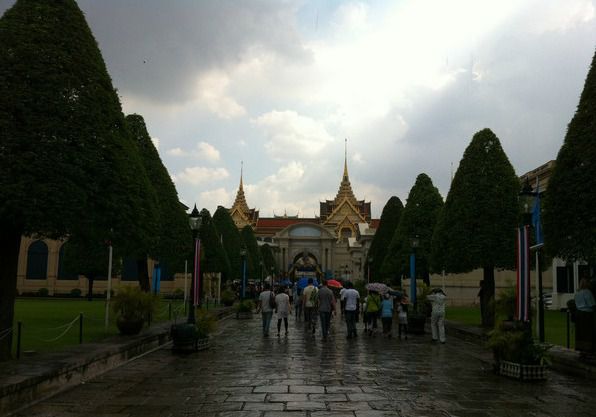 我们去大皇宫的路上,不幸下起雨来,我们赶在了这个雨季与寒季的时候。不过万幸的是,泰国的雨来的急走的也快,到达大皇宫买完票之后,变逐渐雨停放晴了。这是起初还有乌云的天空。