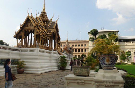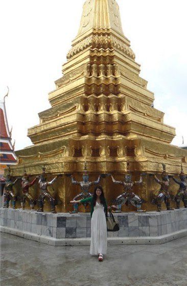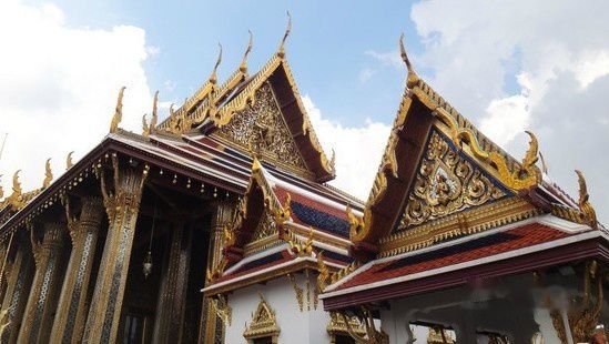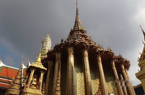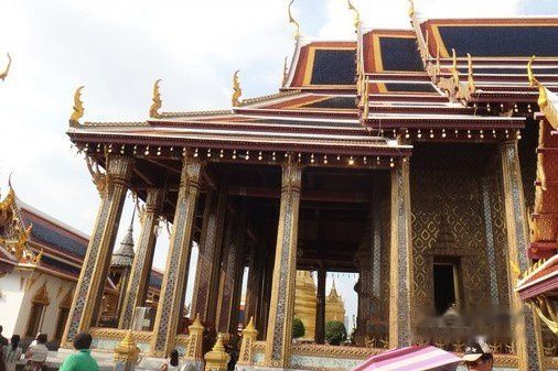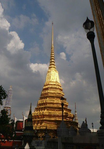 是泰国最著名的佛寺,也是泰国三大国宝之一,泰国玉佛寺的金色舍利佛塔。建于1784年的玉佛寺是泰国大王宫的一部分,面积约占大王宫的1/4。玉佛寺是泰国王族供奉玉佛像和举行宗教仪式的场所,因寺内供奉着玉佛而得名。寺内有玉佛殿、先王殿、佛骨殿、藏经阁、钟楼和金塔。玉佛殿是玉佛寺的主体建筑,大殿正中的神龛里供奉着被泰国视为国宝的玉佛像。玉佛高66厘米,阔48厘米,是由一整块碧玉雕刻而成。每当换季时节,泰国国王都亲自为玉佛更衣,以保国泰民安。每当泰国内阁更迭之际,新政府的全体阁员都要在玉佛寺向国王宣誓就职。每年5月农耕节时,国王还要在这里举行宗教仪式,祈祷丰收。