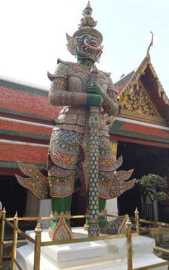大皇宫紧邻湄南河,是曼谷中心内一处大规模古建筑群(计28座),总面积二十一万八千四百平方米。大皇宫是仿照故都大城的旧皇宫建造的,经历代君王不断扩建,终于建成现在这座规模宏大的大皇宫建筑群。大皇宫是泰国诸多王宫之一,是历代王宫保存最完美、规模最大、最有民族特色的王宫。曼谷王朝从拉玛一世到拉玛八世,均居于大皇宫内。大皇宫汇集了泰国建筑、绘画、雕刻和装潢艺术的精萃,其风格具有鲜明的暹罗建筑艺术特点,深受各国游人的赞赏,被称为 “泰国艺术大全”。