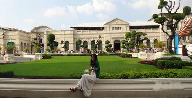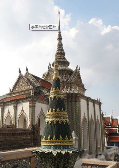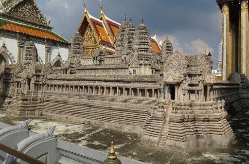 传说中的小型吴哥窟哦~这座藏经阁供奉著一部以金片做成的经典,方形尖顶,屋檐呈特殊的钜齿状,四个门口都有夜叉伫守。藏经阁前有一些小亭子陈列著代表每一世皇的白象及国徽。吴哥窟模型:这个模型在藏经楼北边,是拉玛四世时下令依照柬埔寨的吴哥窟而建,小巧逼真。