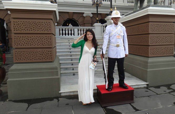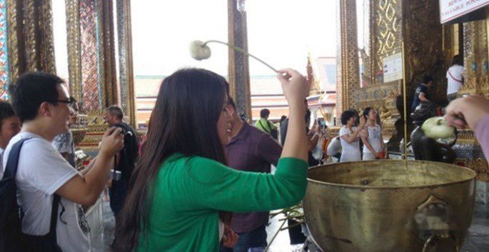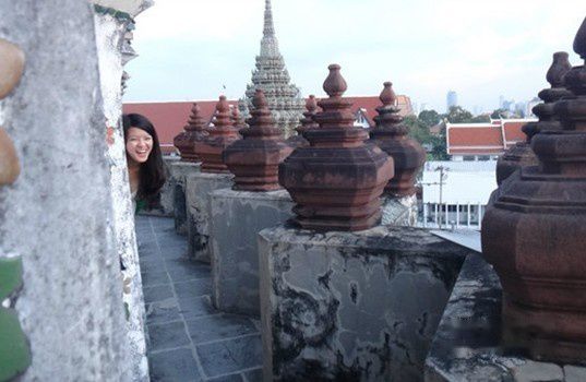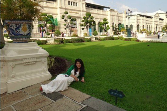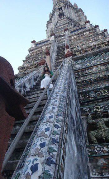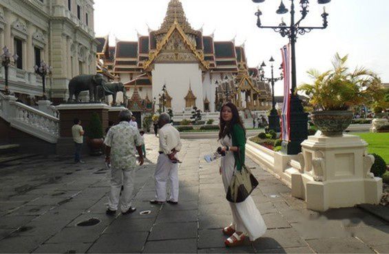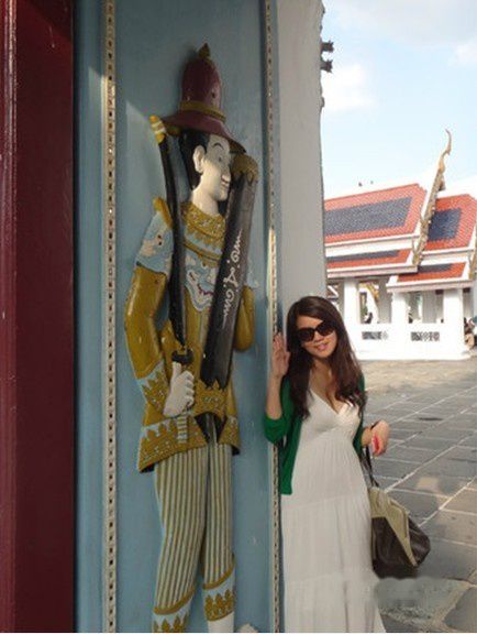 光着脚丫子,因为找不到亲了,一个外国妞给我拍的。这里很多地方是要拖鞋进入参观的,包括玉佛寺。