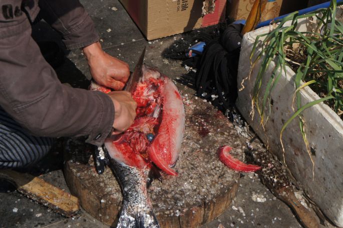 当我最终和大家会合时,我的第一顿鱼汤已经收摊了,我只好看着大师傅在那边杀鱼,千岛湖有机鱼,鱼肉白皙有弹性,鱼生。。。我又想多了,小胖子还是骑车吧。