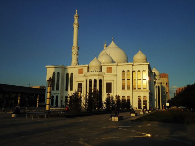伊斯兰教在蒙古地区也只是一个支流宗教,但在呼和浩特,因其形成的景观却是这个城市极为亮丽的一笔。在呼市的回民区,有一条全长1150米的伊斯兰风情街,排排尖拱形并列的门窗、浑厚饱满的球形殿顶、高耸的柱式塔楼、以沙漠黄为主而绿白相间的色调,让人领略到浓郁的伊斯兰风情。