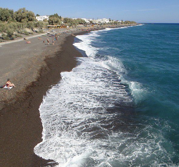 最后一天前往著名的黑沙滩KAMARA BEACH,在爱琴海中享受戏水之乐(这里由独特的火山地质造就,火山岩、火山灰的沉积混着白沙,看起来沙是黑的,水看起来也是黑的,但海水清凉、干净、兼具美容作用)