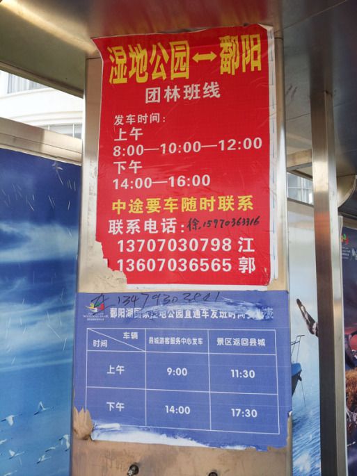 一早由南昌徐坊汽车站坐7点的头班车去鄱阳县,由于该线投入了几台进口的新客车,车票打折推广,原价50现在只要35,车程两个小时。下了车到询问处问有没有去景区的车,回答是每天9点有一班景区的大巴车,已经开了,现在只能包车去。