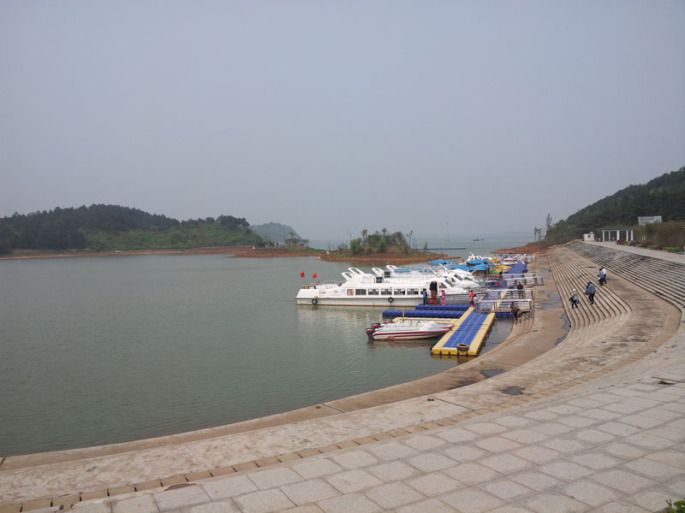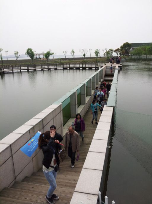 吃过午饭跟着导游穿过观湖平台、观鸟长廊、天鹅湖就到了去外湖的码头。