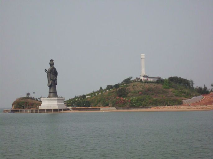路过的这个雕像不是妈祖,而是鄱阳湖的女神——饶娥!”相传饶娥是唐代的一位孝女,饶娥自幼丧母,与父饶绩相依为命,其父以耕种为生,兼操捕鱼。一天,饶绩在江上捕鱼,船覆落水,沉入江中,下落不明。饶娥连续三天在江边痛哭寻找,水食不进,痛不欲生。第四天饶绩尸首浮出江面,乡邻认为是饶娥的孝行感动了天神,才使绕绩尸首浮出。父死后,饶娥决意随父而去,并绝食而终。饶娥的孝行惊动了官府和京城,当时的大文学家柳宗元闻后颇受感动,撰文《饶娥记》彰扬饶娥孝行。《新唐书》将饶娥列入孝女,地方为饶娥建庙、立祠奉祀,饶娥孝道流传至今而不泯。雕像旁边有座石碑的山叫做”龟山“,很像吧。