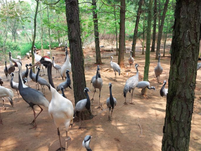 进了科学园先到了“鹤园”,鹤园的上空并没有网罩着,我问导游这样不怕它们飞走吗?导游说鹤起飞跟飞机一样是需要助跑的,距离不够是飞不起来的。靠!万恶的人类啊。