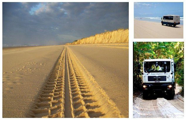 费沙岛全岛都是沙径,所以唯一的交通工具就是四驱车,这里也是全澳州最具挑战性的四驱车路径,所以非常讲求对费沙岛的了解和超强的驾驶经验。度假村每天都有四驱车全天游,由经验丰富的生态导游带领,开展8.5小时的丰富行程,其中最经典的就是【世外桃源之旅】(Beauty Spots Tour),另外还有【香槟池仙境游】(Champagne Pools Tour)。今天就带大家参加【室外桃源之旅】。
