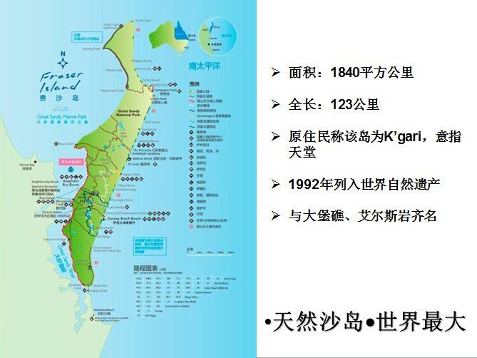 清澈如镜的湖泊溪流,多彩变幻的尖峰沙峭壁,浩瀚的沙洲系统,参天的沙地雨林奇观,一望无际的沙滩高速公路......费沙岛就像人间的世外桃源,所有景象都美得让人屏息,在1992年被列入世界自然遗产名录,与大堡礁、艾爾斯岩齐名,是全世界最大的沙岛,澳洲人的骄傲。翠鸟湾度假村就建造在这个人间仙境中,被绿林翠湖环绕,瞭望动人的大砂海峡,每个房间供应的清纯地下水更是甜入心扉。豪华恬静的入住环境和著名的四驱车探秘之旅令游客流连忘返。在费沙岛停留3天,登上四驱越野大巴享受世外桃源之旅,将是人生难得的体验。费沙岛海域在每年的8月-10月更是全澳州的赏鲸之都,如果您刚好碰上这段时间来游玩,千万不要错过赏鲸游船之旅,透过清澈的海水近距离观看鲸鱼们嬉戏。