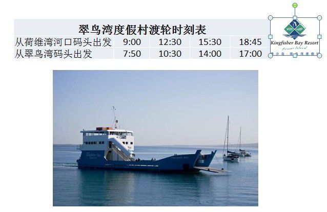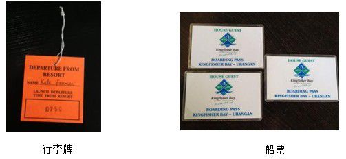 工作人员将提供行李牌和船票,只需把行李牌写上姓名,系在托运行李上,将有行李员把行李直接送到度假村的房间内。随后请休息等待,在渡轮开船前15分钟将有接驳巴士把所有客人送到渡轮上船点(约3分钟车程)。乘搭渡轮,前往费沙岛。