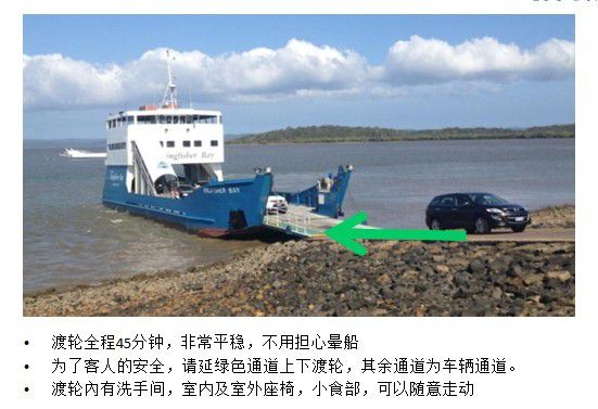 河口码头接待处(River Heads)在一个购物区。抵达后请先到接待处办理登记手续,托运行李。自驾车的朋友请跟随工作人员指引,把车听到有保安监控的停车场内。(渡轮时刻表如上。请在渡轮出发前45分钟到达河口码头办理手续)。
