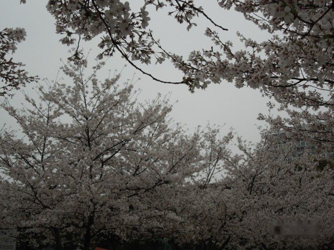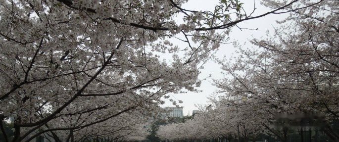 只是今天从早上起,天气一直阴沉沉的,如有太阳光照耀着,樱花闪烁点点金光,樱花大道将更辉煌壮观。