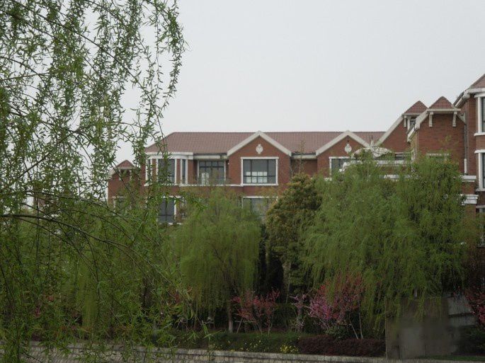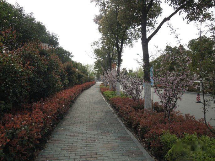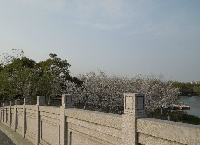 下午天空开朗起来,公交车行到顾村公园时,已是阳光明媚,公园前面有小河,对岸是精致的连体别墅,掩隐在绿荫中,红墙红瓦的特别醒目。
