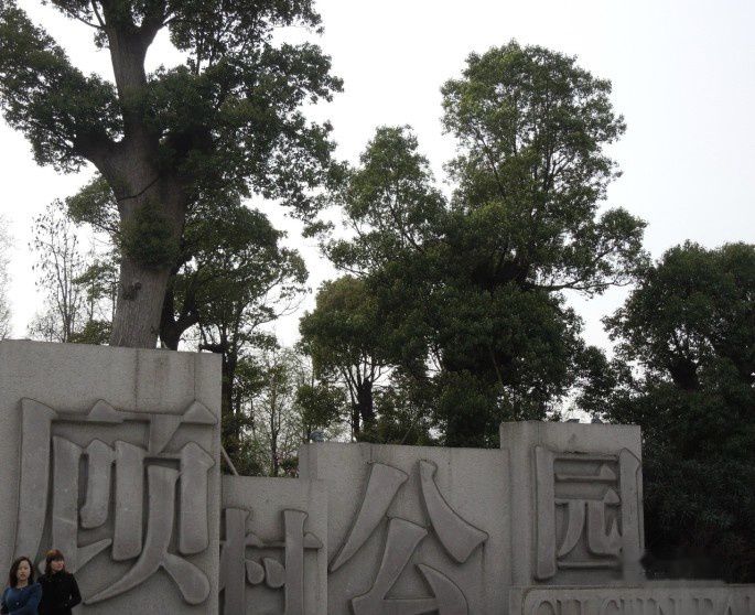 顾村公园四个刻在石头上的大字,高高低低,前后错落,和后面几棵俊朗挺拔的参天古树,连成一景,有了字的石头似乎有了生命,不知道为什么,出现在我脑海里的却成了八个字_团结紧张严肃活泼。