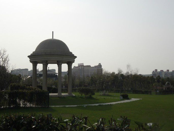 走了蛮长时间,才看到公园售票口,进大门有景区电瓶车,我觉得还是自己走比较好,走走停停找找看看,才可能有意外发现,意外惊喜和收获。鹰冠庄园便是,就在电瓶车售票口的对面,一条小路,折进去,一堵树墙横在眼前,透过女真树枝叶,里面大片的草坪,西南角竖立着异国情调的亭子,