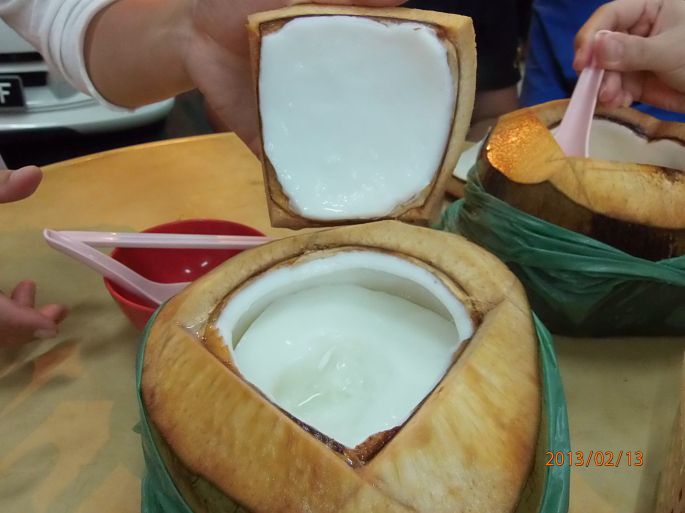 新鲜椰青最便宜2.5RM一个,清甜解渴,好过喝水。吃完还可以挖出嫩嫩的椰肉来吃。