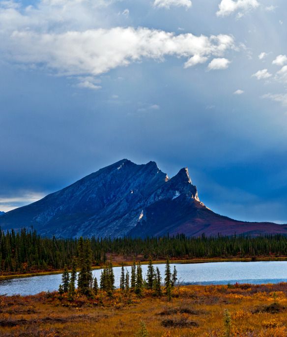 为了加深对最后的边疆----阿拉斯加荒野的终极体验,趁天还没黑,我们又沿公路向北驱车近50公里,遇到这片湖光山色,借着夕阳的金光照耀按动快门,捕捉下这般美丽的景色。