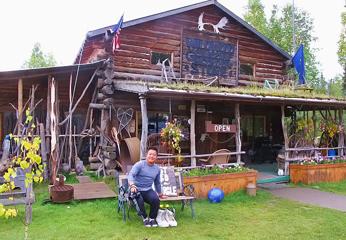 在此途中有一个人和一个店我不得不提。10点40分我们向北行至去北极圈途中的第一个落脚点北极圈商栈(Arctic Circle Trading Post),这是一个两层楼装饰非常漂亮的商店。主要经营各式北极圈纪念品,并给游人提供食品。咖啡是免费喝的,不管你买不买东西。店的主人名字叫Joy,36年前和妻子一起从美国本土明尼苏达州来此旅游,从此落脚于此。他们自己在荒原上盖起了房子,一间店和公路另一侧的家。在这里他们养大了23个孩子,其中16个是收养的,现在孩子们长大大多到外地工作生活去了,留下夫妻二人继续坚守。Joy很自豪的说,现在孙子都一大堆了,孩子们经常回来看望他们。Joy店里的东西非常全,都是关于北极圈的,有书、木雕、服装等等各种纪念品,其中手绘明信片和其他一些工艺品出自他妻子之手,非常精美。Joy在与客人道别的时候,给每一个客人送上一份他自己手绘的精细的Dalton公路地图,并认真地要求客人回来时务必再次光顾他的店,而客人没有一个爽约的,因为等你从北极圈回来的时候,Joy作为自称的Joy市市长会免费为每个去过北极圈的人发放北极圈勇士证书,证书由他手绘并在上面亲笔签名,封上Joy市的钢印,弥足珍贵呀。相信每个来过的客人都会对Joy的热情留下美好而深刻的印象。