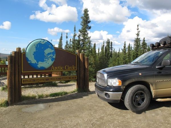 原本计划向北一直开到北冰洋,后来在做功课的时候了解到,进入北极圈后一直通到北冰洋的公路路况不稳定,上面跑的基本是石油基地的运输大车。车开到Dalton公路的尽头,还要走16公里才能看到北冰洋。靠近北冰洋的路段属油田的领地,限制私家车行驶,如果真的想过去,在到达临近北冰洋的最后一个城镇Prudhoe Bay普鲁德霍湾后要提前一天申请许可,才可入内。从Fairbanks到普鲁德霍湾 ,应该说近700多公里的路程沿途景色比较单调,很多路段是石子搓板路,单趟行程要两天时间,加上申请等待的一天时间,来回就要走5天。想着我们此行的目的主要是探寻拍摄阿拉斯加最美的风光,思来想去,最终我们还是决定就走到北极圈边界,放弃北极圈边界后漫长而具有风险的路程,所以今天我们到达的将是此次行程的最北终点。