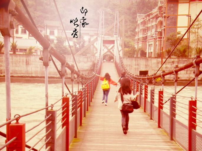 我们走在“团结桥”上,显得异常兴奋,因为很少见到这样长的吊桥,走在上面还会有微微晃动的感觉,能够深切的感受到浩瀚的岷江流水。