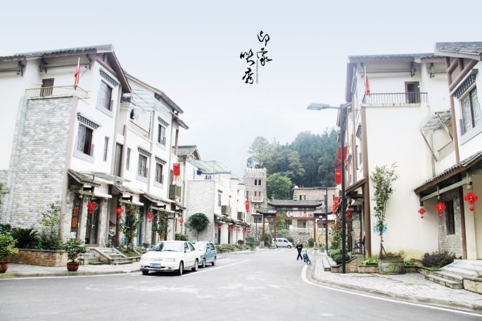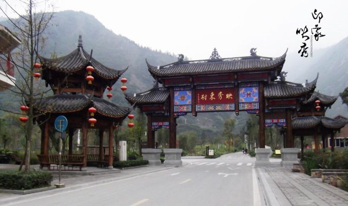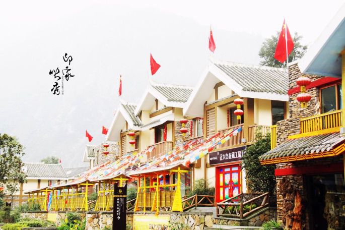 过桥之后,我们正式踏入了这座隶属四川省阿坝藏族羌族自治州汶川县的秀丽小城。首先映入眼帘的是映秀长安居,这是当地的一个极具川西民居、藏寨风情的居民小区,建筑上独有的藏式特色花纹便是它的标志。