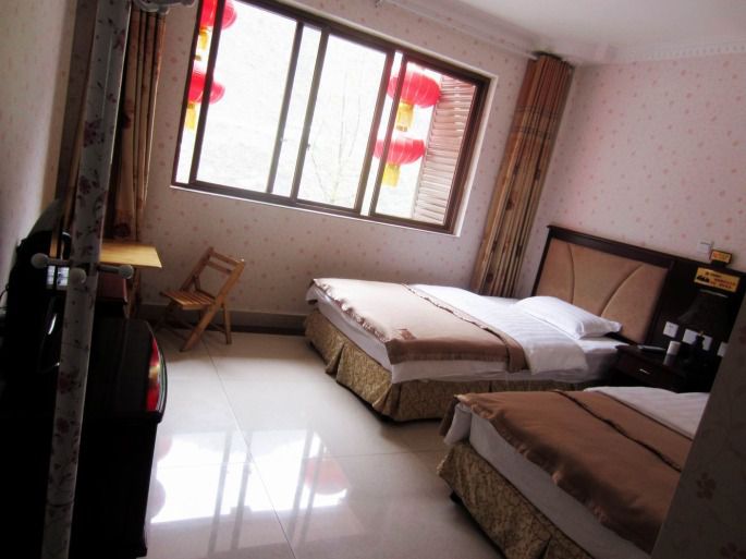 大约早上10点的样子,我们在岷江西一路找到了一家非常值得一住的客栈——映秀吉祥客栈,我们去的时候运气还好,正好有人退房,我们立马就入住了3间标间,120元/ 双人间。客栈是三层的藏羌式小楼,虽然只是一个小客栈,管理却非常正规,客栈房间非常宽敞明亮,最喜欢的就是房间里的那扇落地窗,轻轻一推开便可领略岷江流水,青山白云,藏羌风情……