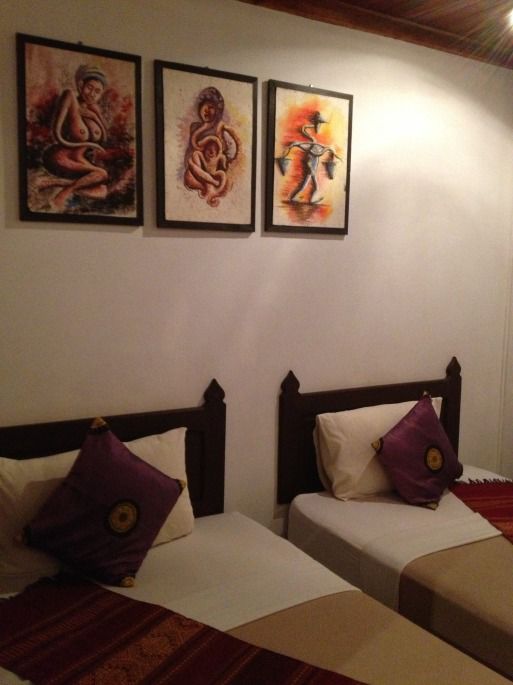 清晨醒来,呼吸着琅邦清新的空气,顿觉神清气爽。赶紧出门早餐,这才发现我们在网上订的酒店位置其实相当的好,距离夜市、洋人街仅几步之遥,但又相对清静,于是决定就近另选一家住下。琅邦的物价已不如网上大家介绍的那般便宜,找来找去,选了这家性价比还算不错的GH,16刀一晚,还有免费wifi,跨过门前的马路就是湄公河,到夜市也是转个弯的距离。