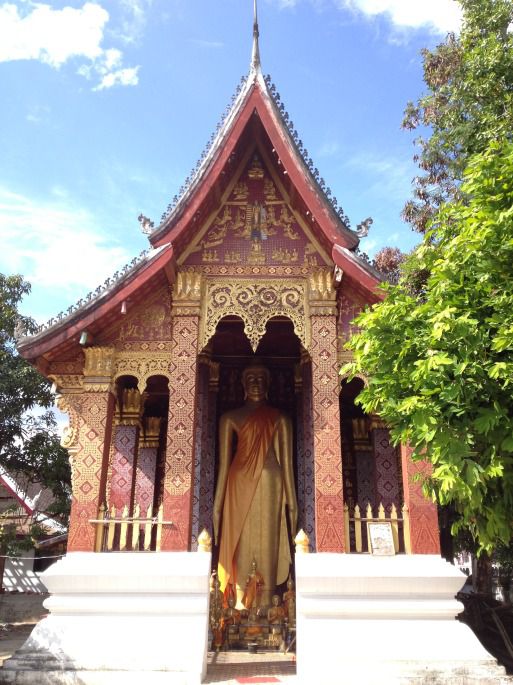 沿着通往洋人街的主街道没走几步,便遇上了我们在琅邦的第一座寺庙,安安静静地坐落在道路边上,庙里也不见几个和尚,却到处透着肃穆。琅勃拉邦寺庙众多,仅古城区内就有二三十座,在城区穿行,很容易便能路过好几座寺庙。