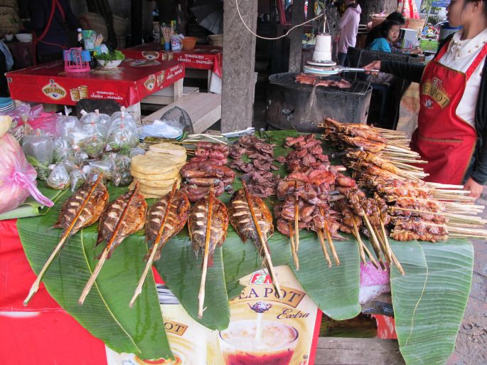 欣赏完了美丽的落日余晖,在夜市上随便逛逛,来一杯fruit shake,再去河边的酒吧喝一瓶Beer Lao,整上一条湄公河烤鱼,恍惚间竟有一种不知今夕何夕的美妙感觉。