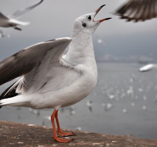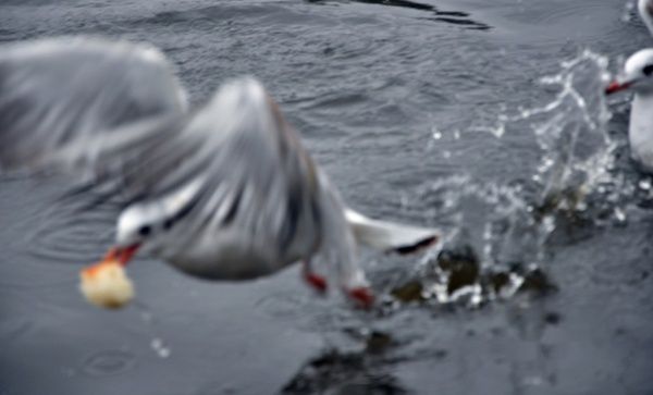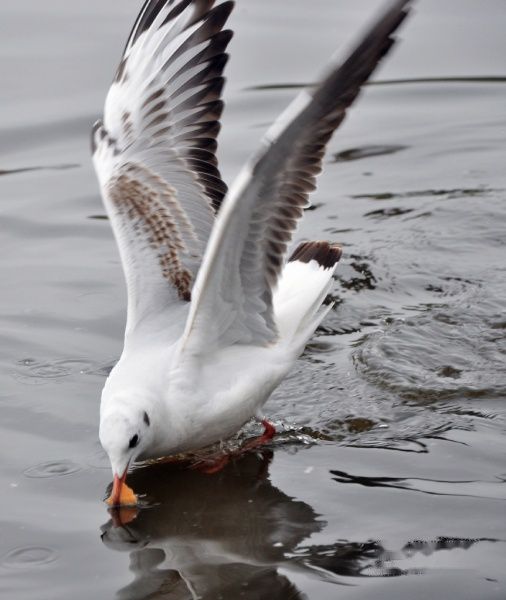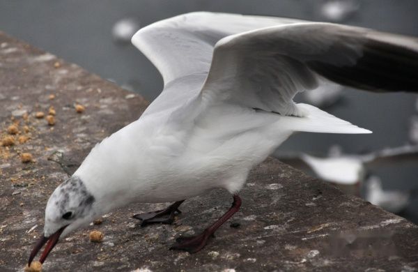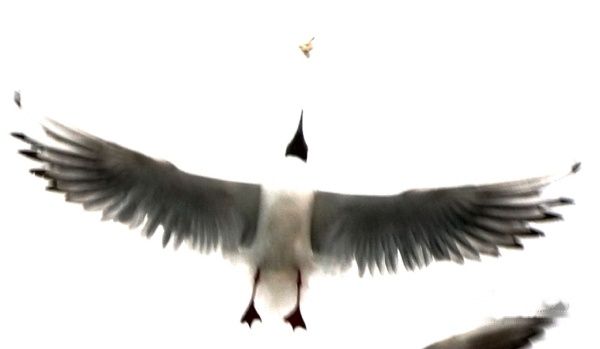 最奇的是,当把食物抛向空中时,飞行着的红嘴鸥能空中及时刹车接住食物。