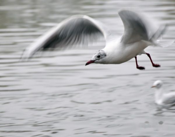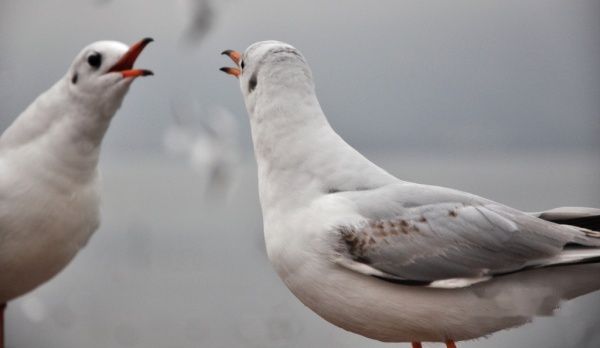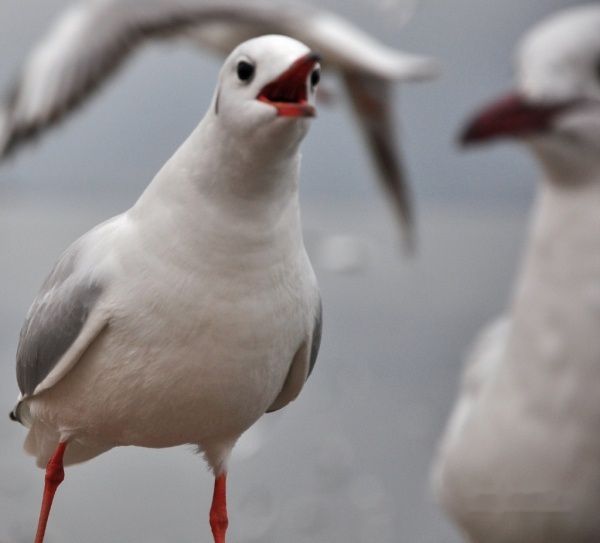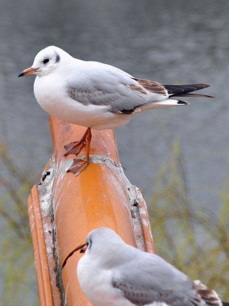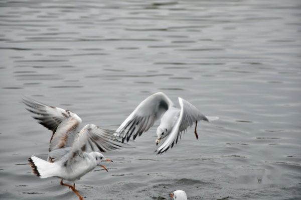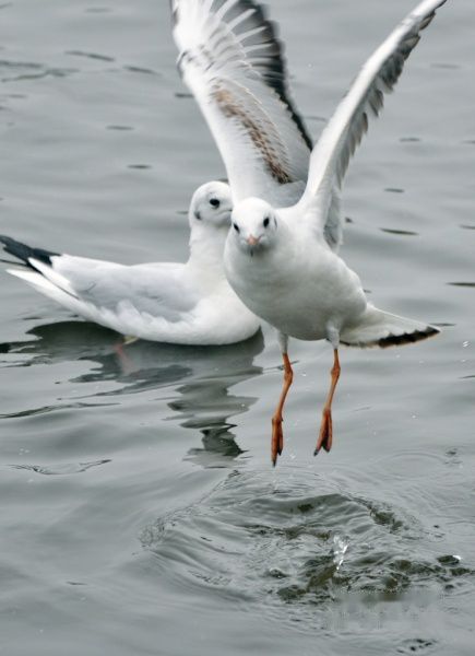 红嘴鸥也有自私的一面,一只占了地方,另一只过来,会被驱赶。这两只互相叫板着呢。