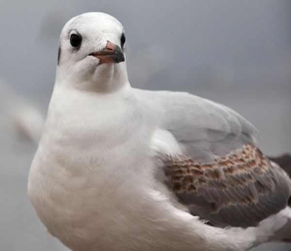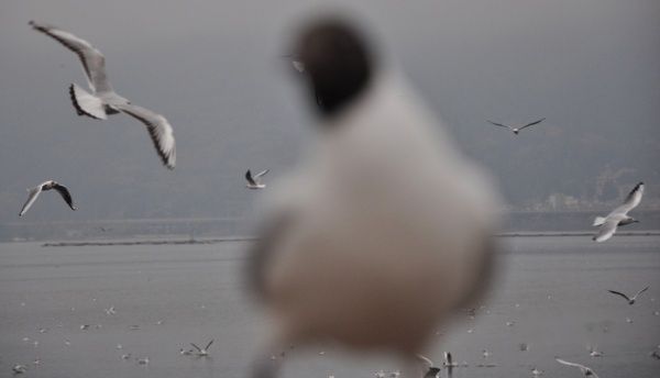 红嘴鸥们看见游人手上的鸟食,都期待着。