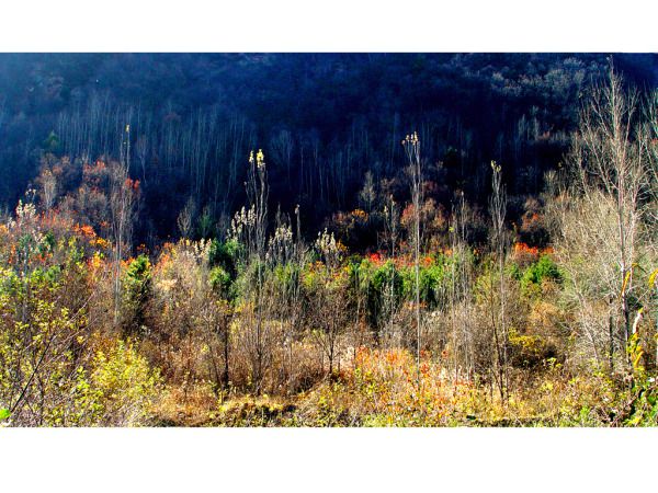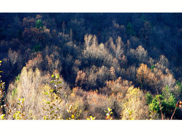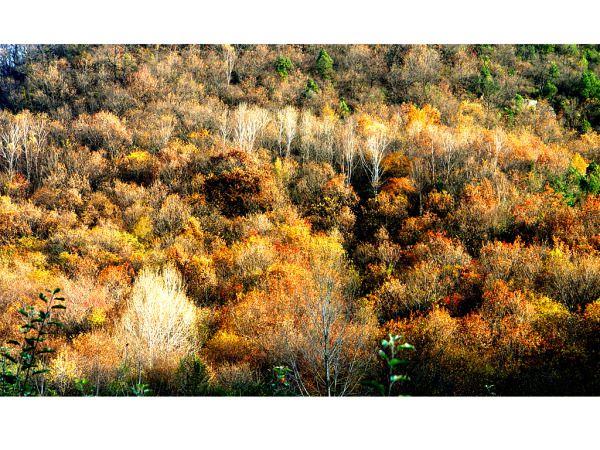这天午饭后在电厂周围转了转,突然发现办公室后面山上的色彩还是不错的,立马取了相机拍了几张一看,效果真还可以。