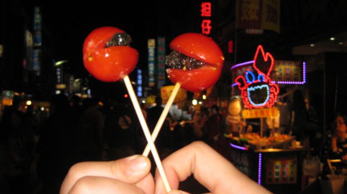 4. 夹着梅子的小番茄。小番茄本是台湾十分著名的水果,很甜很新鲜,多汁多肉。在配上一颗微酸的梅子在中间,会使口感更佳,味道更好。如果能在上面散上一些酸梅粉,那是再美味不过。