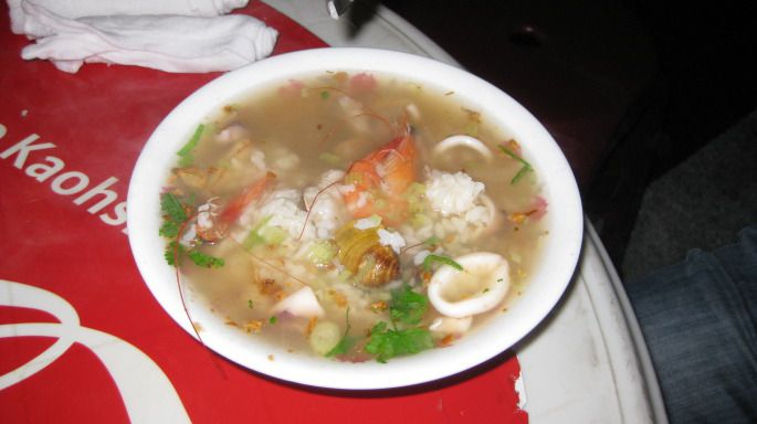 3.海产粥。 粥的味道很鲜美。粥里的海鲜各种各样,应有尽有,不喜欢海鲜的人也可以尝试一下。粥里面的米是台湾当地的香米,饱满圆润,和鲜美的海鲜煮在一起,是美食家和吃货的首选。