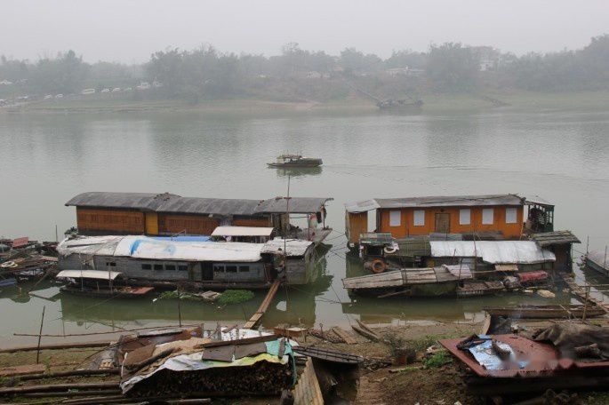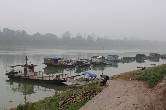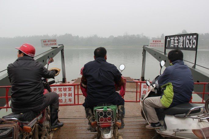 十二点终于上船了。摩托车在乡村是很常见的交通工具。