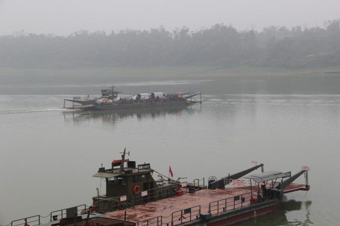 只有一艘渡船来回摆渡,每次大约能装载10辆汽车。