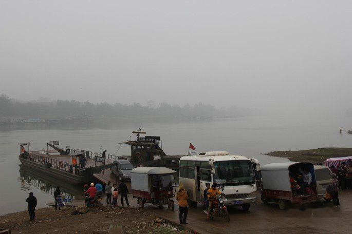 吃过早饭,老陈一家和弟弟一起去大约40km外的南宁扬美古镇,这些年老陈一直想到那看看,这个春节总算安排成行。到扬美古镇的线路很多,不过驾车最便捷的线路还是由江北大道往西—石埠街圩—老口渡—扬美古镇。上午十一点二十分来到了老口渡口。