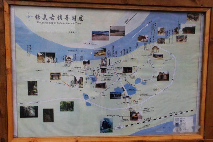 扬美古镇导游图。全镇三面环山,一面临江,方圆6.5平方公里,现有人口5300多人。