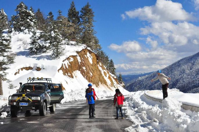 下午时分,随着海拔的不断升高,开始有一片片的雪山显露面容。梅里的雪山群,梅里十三峰,峰峰不同,我都记不清各自的名字了,我们看到的这第二座大概是白芒雪山。看到雪山,大家都掩不住的兴奋,早忘记了旅途劳累,忘记了这里的高海拔,跑出来拥抱这片纯净的雪域和天空。
