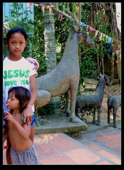 下图:回来整理照片才发现这个女孩很美,大大的眼睛会说话。她搂着的女孩应该是她妹妹,嘴里还叼着我给的糖果,将来也准是个小美女。
