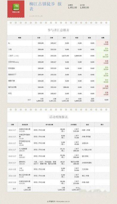 我们本次行程费用分享:主要费用是车费,住宿费,餐费等,途经 柳江古镇--洪雅槽鱼滩--眉山--成都。以下是消费明细报表: