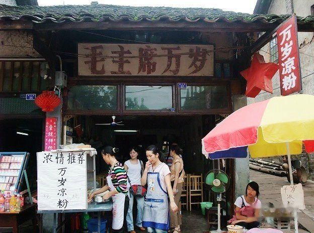 网上热炒的万岁凉粉就在眼前,小店并不起眼,如不刻意寻找,很容易擦肩而过,只是挂在门脸的“毛主席万岁”匾,散发着革命历史的红色气息。品尝之后,才知万岁凉粉麻辣先行,香随其后,不错!