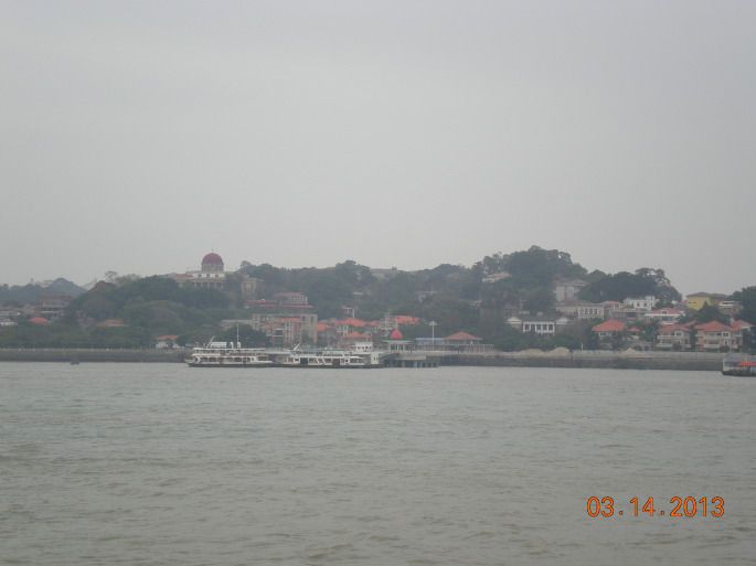 从普陀寺出来坐车去轮渡那边踩踩点儿,发现去鼓浪屿最早的船是6点,在鹭江边拍了点儿照片,有点儿阴天,对面的建筑和风景有点儿拍不清楚。到轮渡对面的中山路步行街溜达了一圈儿,顺便去家乐福买了点儿面包当明天的早餐。坐车回宾馆,在卤味店又买了两对鸡翅膀和一块豆腐干,放下东西后火速奔向厦门大学(厦大中午12:00-2:00对游人开放,但是只放行700人),不幸的是,我们过去的时候,名额已经没有了T T。。。