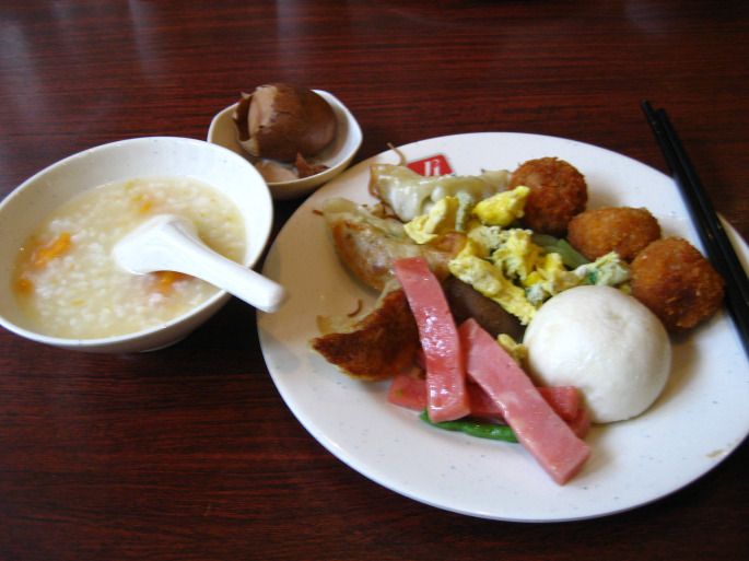 早晨在锦江之星的餐厅吃的自助早餐,种类不太多,但是味道居然不错,很后悔之前的几天舍近求远,在外面到处找吃的。。。