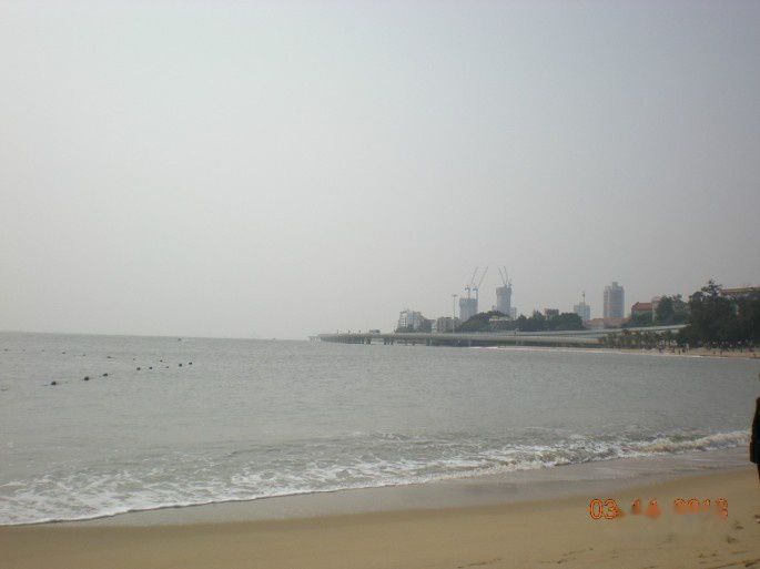 下午坐车去了胡里山炮台那边,因为对大炮什么的不感兴趣,就在旁边的沙滩和环岛路栈道溜达了一会儿,水清沙细,风稍微有点儿大,一个浪头过来,我的鞋里都进水了,不过吹着海风很舒服呐~那边的风景不错,还有一只骆驼卧在沙滩上。返回到沙滩的入口处,遛了一下他们的环岛路,据说是马拉松的指定路线,路边有好多租自行车的,考虑到厦门的丘陵地形,我们放弃了租车,改为步行,走到哪儿算哪儿。