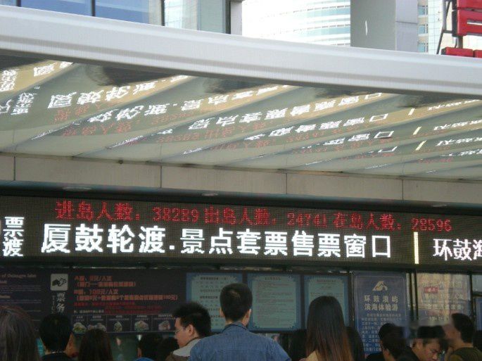 走累了就找一家咖啡馆喝喝咖啡,休息一下,不过鼓浪屿上的咖啡不便宜,而且不是很好喝,最主要的是,当我们点完了以后,店员告诉我们“没有。”再换就只能换更贵一些的了,让我们有上当被宰的感觉。兜兜转转再次回到码头的时候已经是下午快3点钟了,数来从早晨到现在也遛了8个小时了,赶上上一天班了,而且小腿儿有点儿吃不消,只能打道回府了。本来去鼓浪屿就没想走游客的大众路线,不过感觉还是走偏了,甚至有些小马路只有我们两个人,更有甚者,有的房子上还写着“危房,请勿靠近”= = 回到厦门的时候,我好奇的又看了一眼码头卖票的游客中心,上面显示上岛人数已达1万9千多人了。。。
